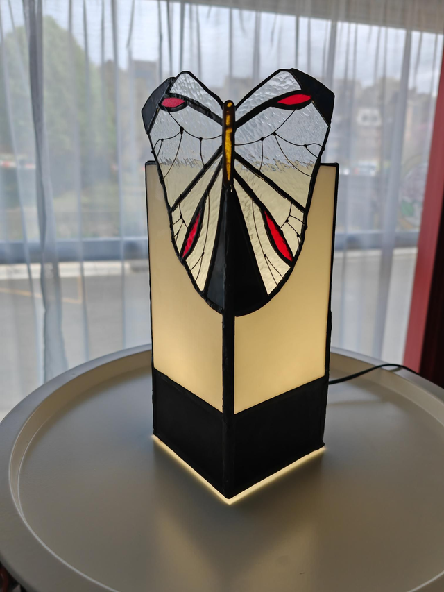 Lampe vitrail carrée, douille e14, interrupteur.